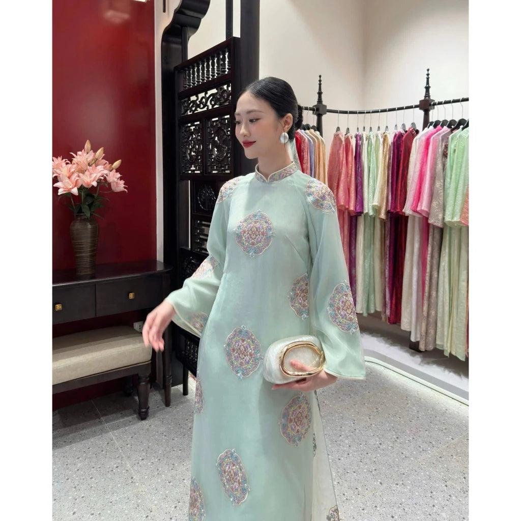 Mint Organza Modernize Ao Dai