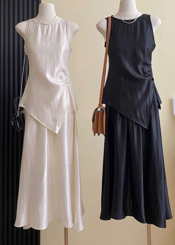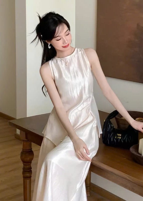 Set Bộ Áo voan lụa nhún eo kèm chân váy dáng dài