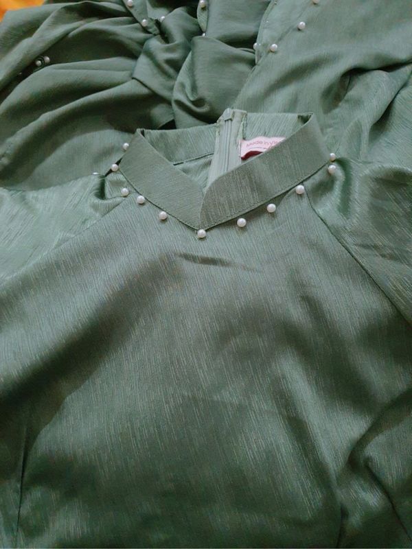 Materials: Silk, double layers. The fabric is not stretchy, 1 size up recommended.
